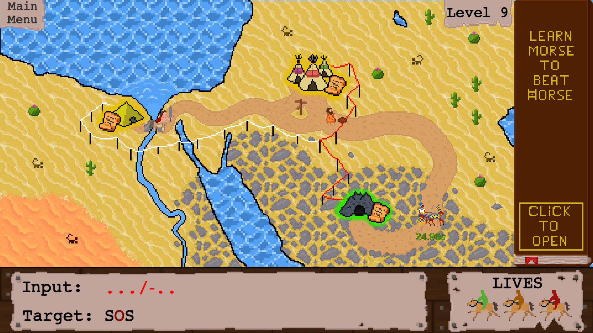 Deliver messages between ancient cities in morse code, in a battle against horses, cars, trains... and more! Start out by learning letters, then build up your skills until you can write full sentences, with numbers and punctuation. Officially self-approved best game in history.
