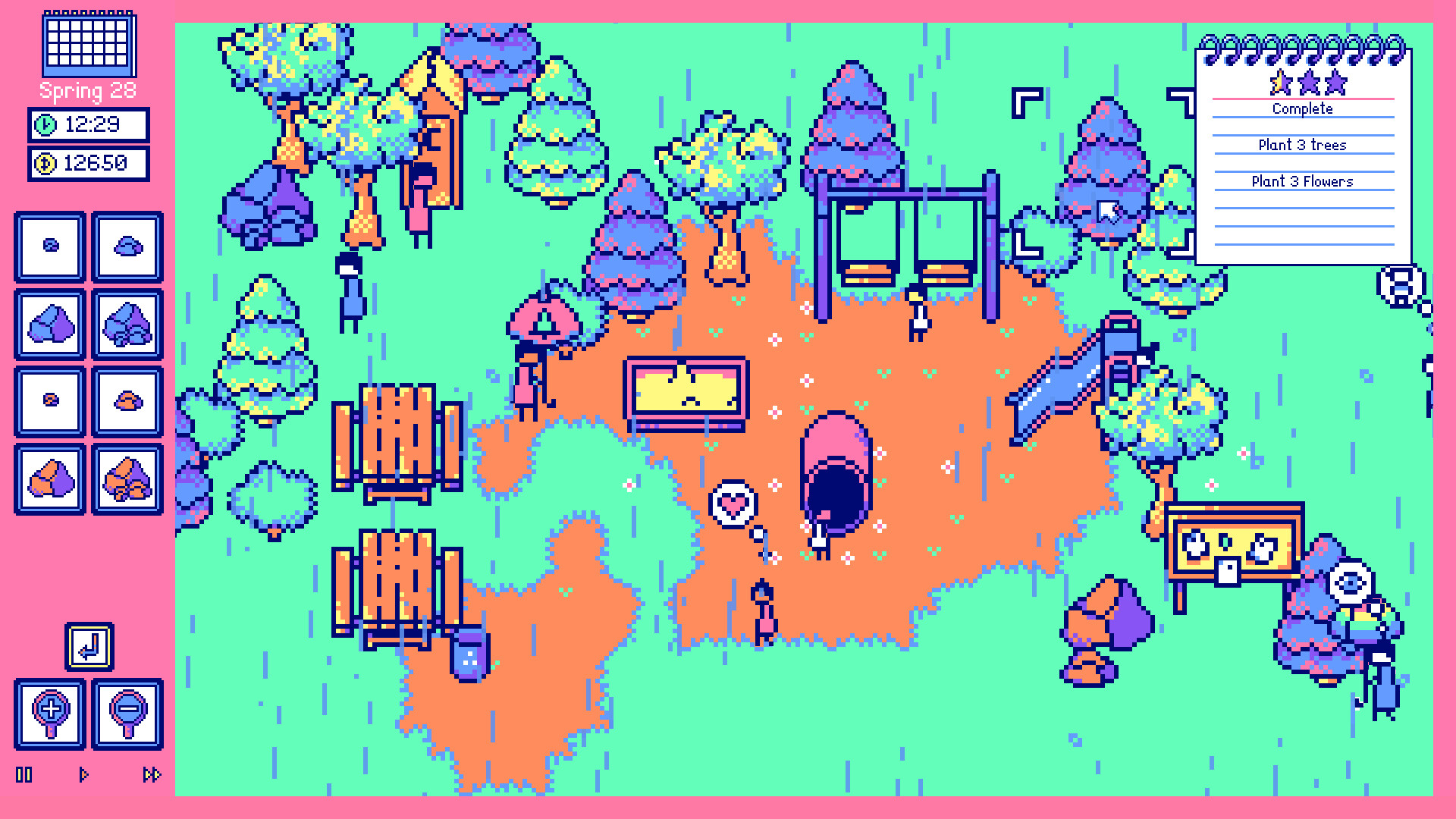 My Tiny Park is a management sim where you design and manage parks of all kinds - from schoolyard playgrounds to sprawling nature reserves. Balance budgets, attract visitors, and craft the perfect outdoor space in this relaxing yet strategic game!