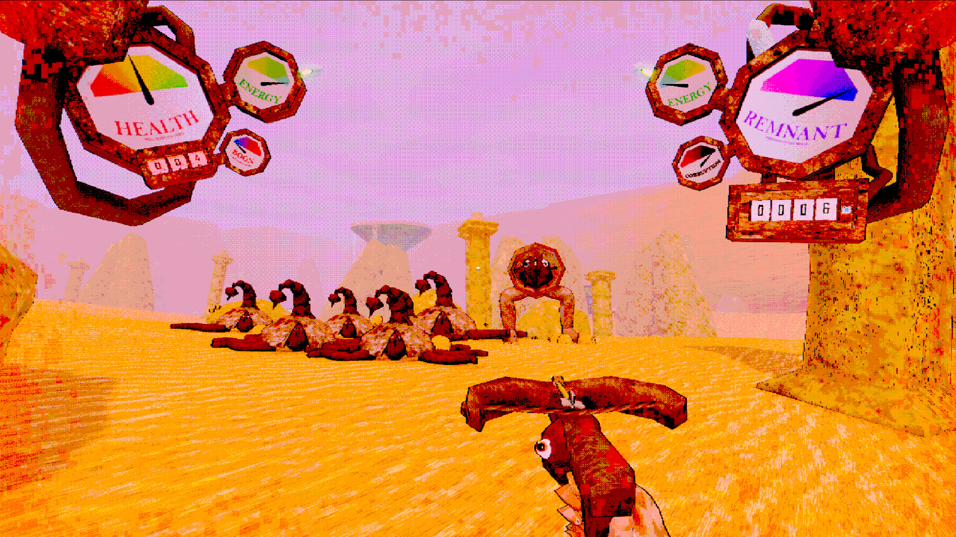 A First Person Roguelike Horde Survival game; Hook your brain into your computer, dive into a game inside a game, unbox and stack unique items, use up to 6 weapons at once, kill weird fleshy enemies, and uncover what the shady company behind the game is hiding