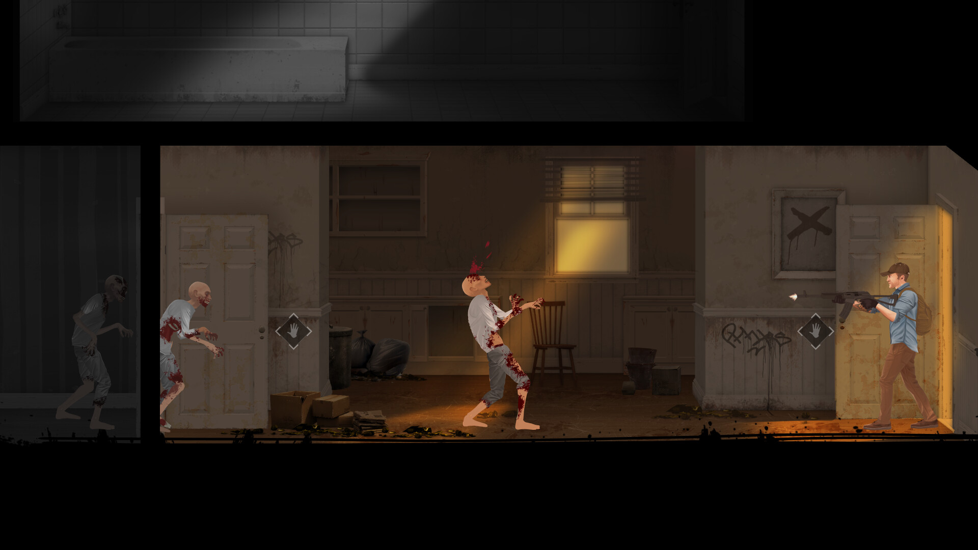 Survive a gritty 2D apocalypse featuring realistic physics and visceral dismemberment. Fortify your sanctuary by day and defend it by night. Scrutinize every survivor seeking refuge: inspect them for symptoms, for one hidden infection will doom your entire colony.
