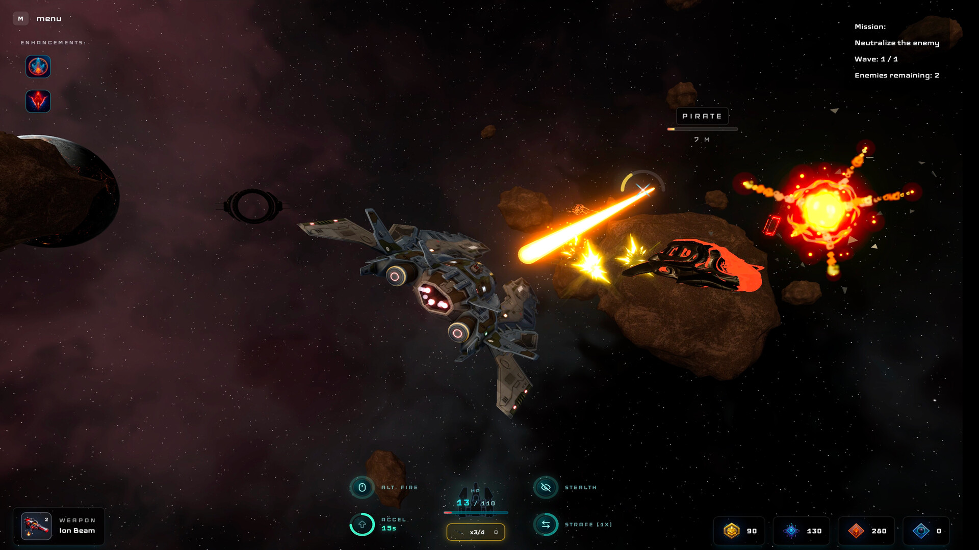 Overvoid - is a dark sci-fi third-person action roguelike. You are a starship pilot trapped in an endless cycle across hostile space sectors. Fight relentless enemy waves, experiment with builds, gather resources, and unlock weapons, ships, and modules to break the cycle.