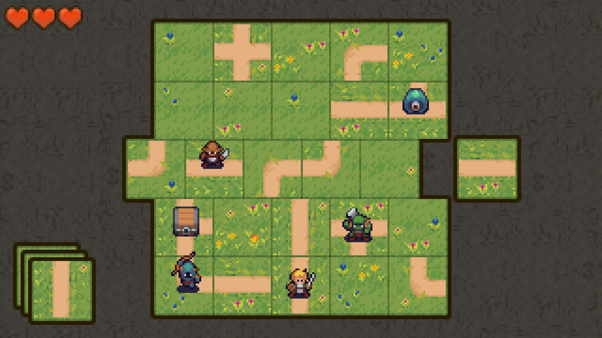 Patch Hero is a minimalistic, turn-based roguelike where you stitch together a world one tile at a time. Build paths, battle enemies, and uncover treasure as you patch together your own little adventures.