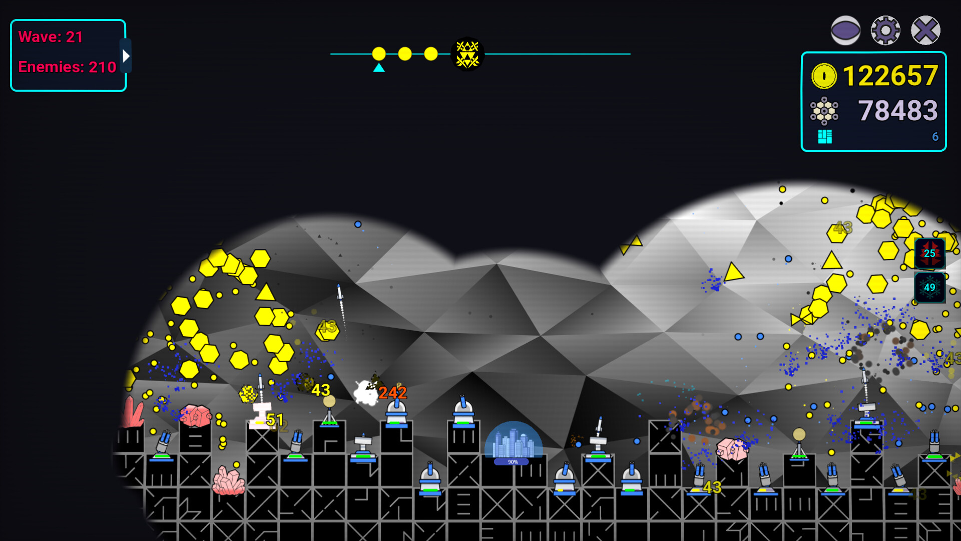 In Plasma Dome you must defend your city from an aerial assault by geometric entities arriving from another dimension. A tactical Tower Defense with roguelite progression, no predefined paths, only strategy and survival.