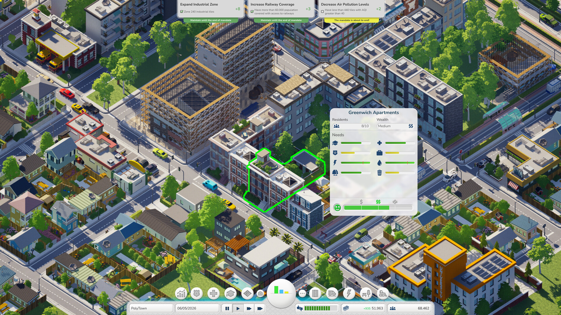 PolyTown is a modern, low poly city building game. Zone areas for residents and businesses, connect them and build services and utilities to keep your citizens satisfied. But don’t get too comfy, if you don’t do your job well, people will make you pay the price.