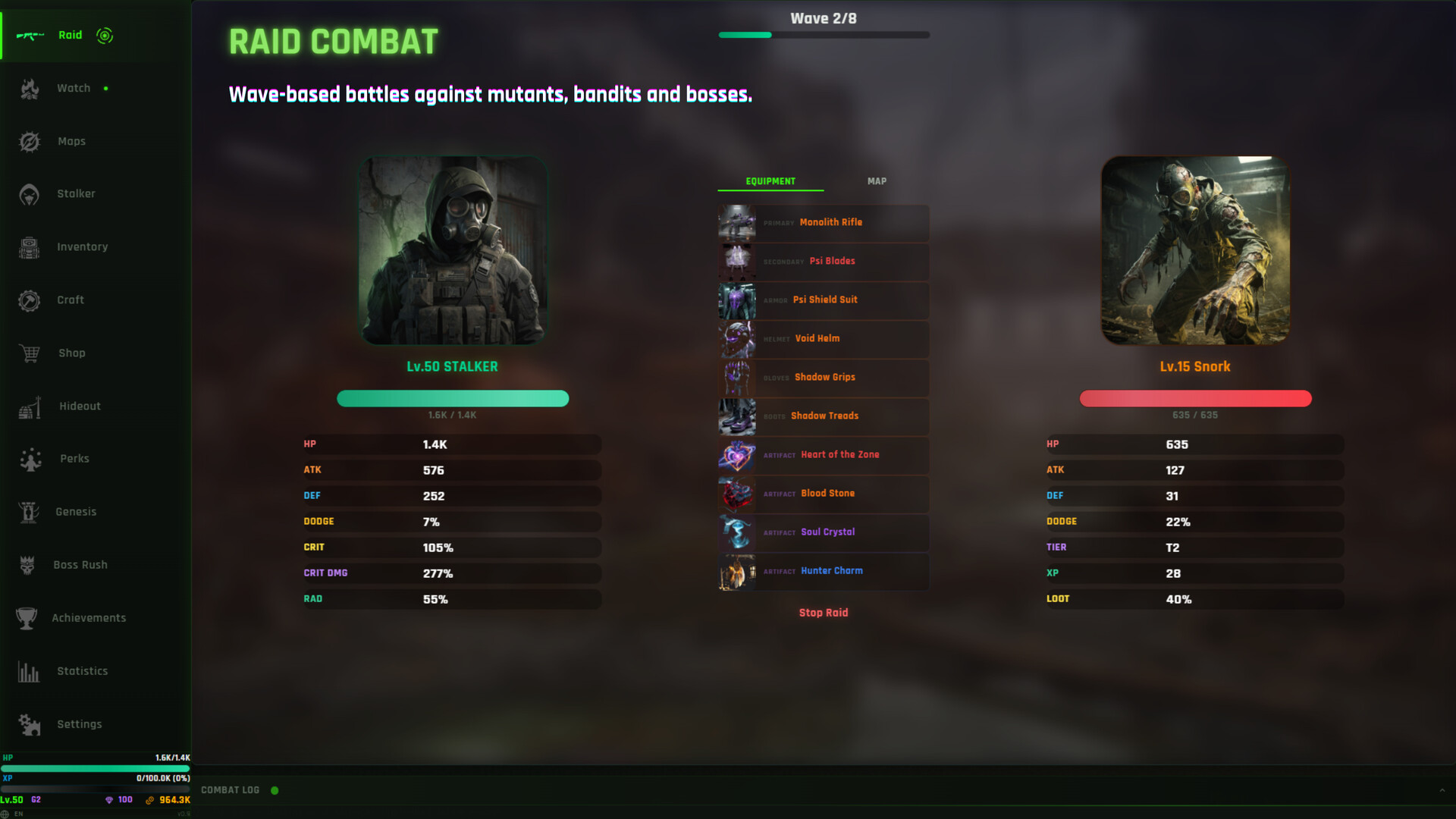 Survive the irradiated Zone. Raid hostile territories, loot rare gear, craft powerful equipment, and upgrade your bunker in this dark atmospheric idle RPG. Die, undergo Genesis, and return stronger. Turn-based combat, deep prestige layers, and endless progression — the Zone demands evolution.