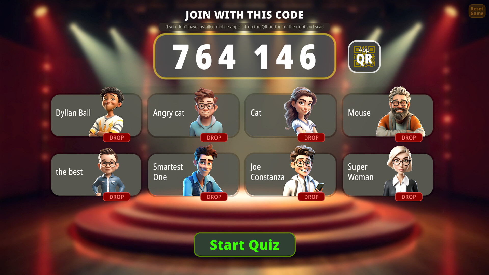 A fun multiplayer quiz for up to 8 players. Use your phone or tablet as a controller while the game runs on your PC. Choose between fast Blitz rounds, classic Standard play, or relaxed Party mode. Perfect for friends, parties, and good laughs.