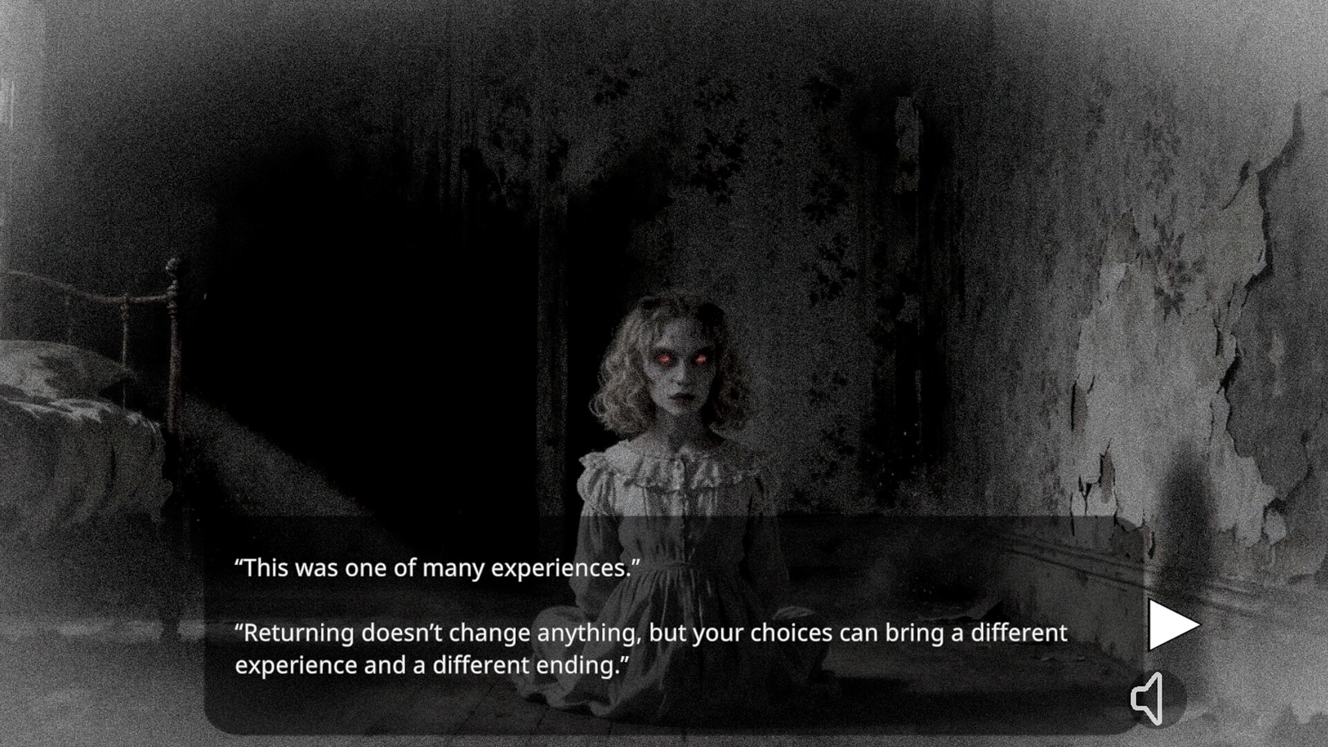A psychological horror narrative RPG where player choices shape a coerced life, lead to irreversible consequences, and determine how a descent into darkness unfolds through dialogue, decisions, and psychological tests.
