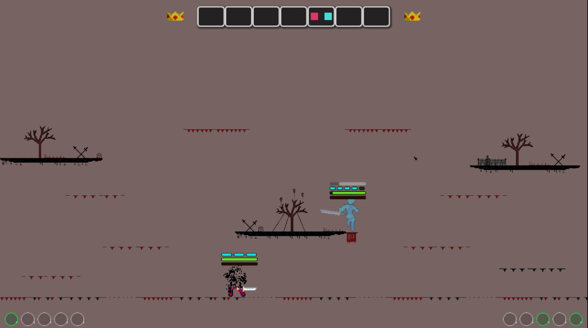 Rolling With Swords is a chaotic 2D arena brawler set in random levels. Chain attacks, roll through danger, and collect absurd power-ups in a tug-of-war system where control constantly shifts until one player claims the entire arena.