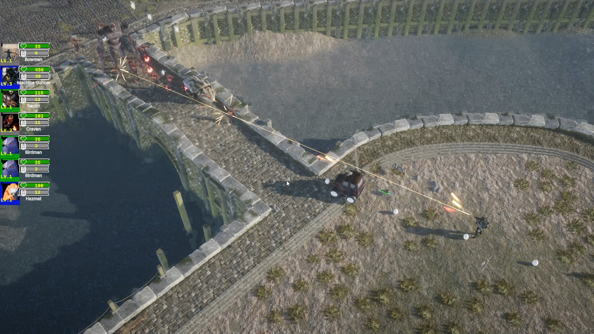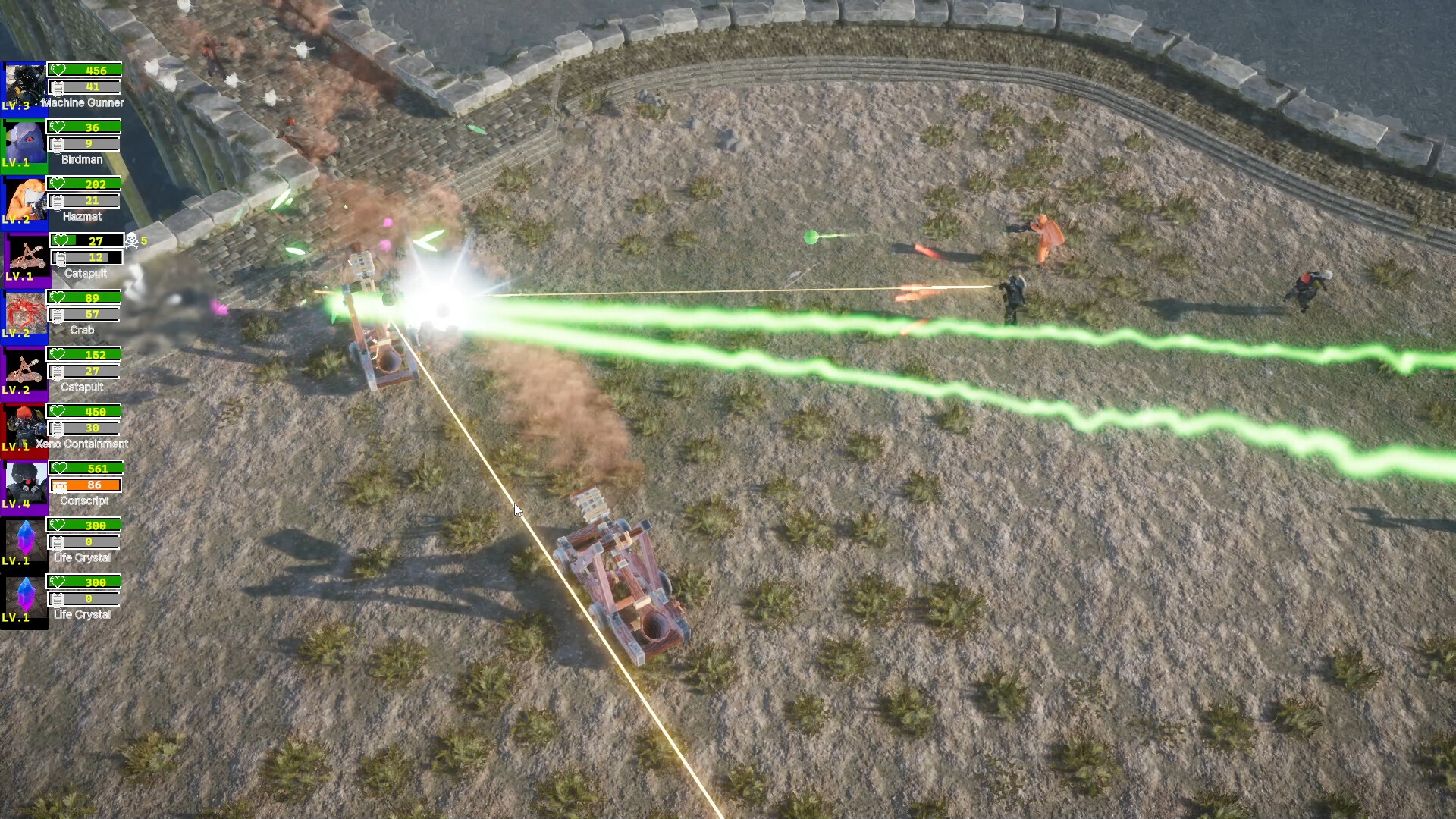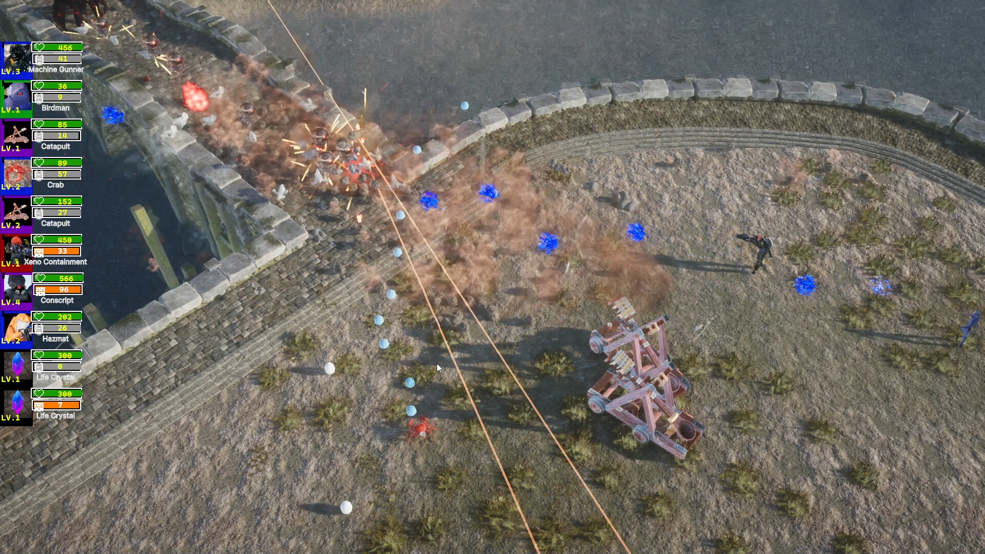 A chaotic strategy autobattler where you draft units, build synergies, and unleash massive battles with bullets, rockets, tesla cannons, chickens, and industrial war machines.