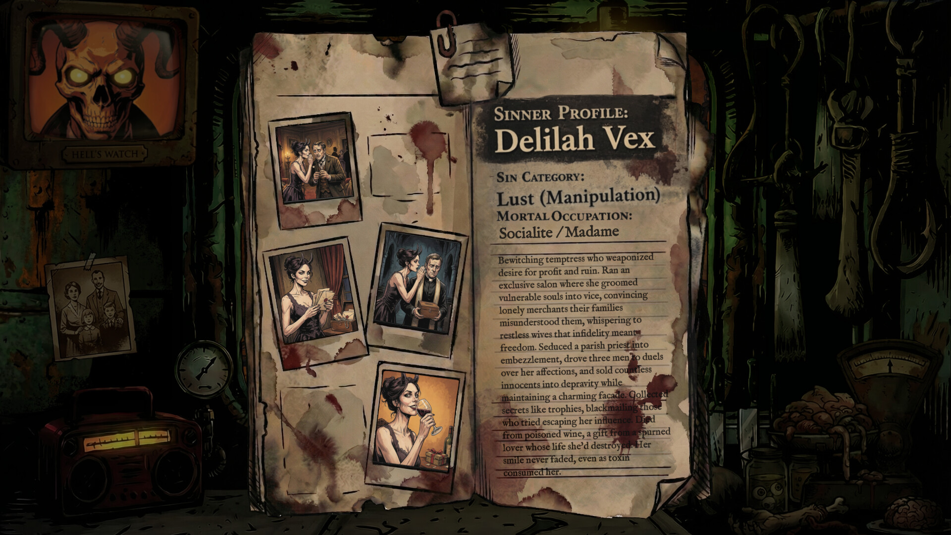 A hellish shift-based cooking management sim. Review sinner profiles, craft sin-matched meals, and harvest body parts. Meet Satan's brutal quotas and rise through Hell's ranks, or secretly build trust to help souls escape to Heaven. In this kitchen, mercy is the most dangerous ingredient.