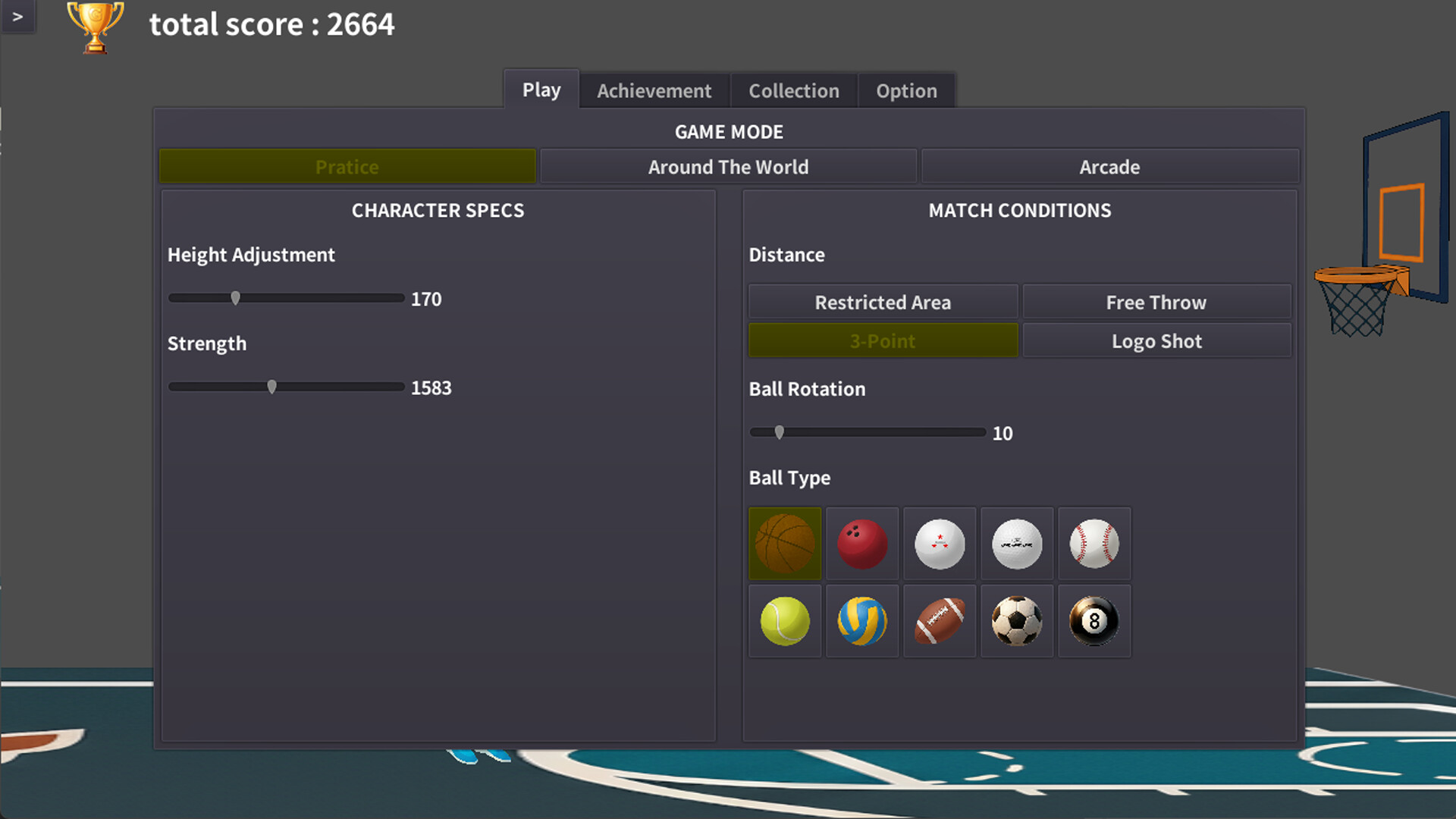 Master the art of the perfect shot in this physics-based arcade game. Use your mouse to control the angle and power of your arm, ensuring a "swish" from the free-throw line or all the way from the logo.