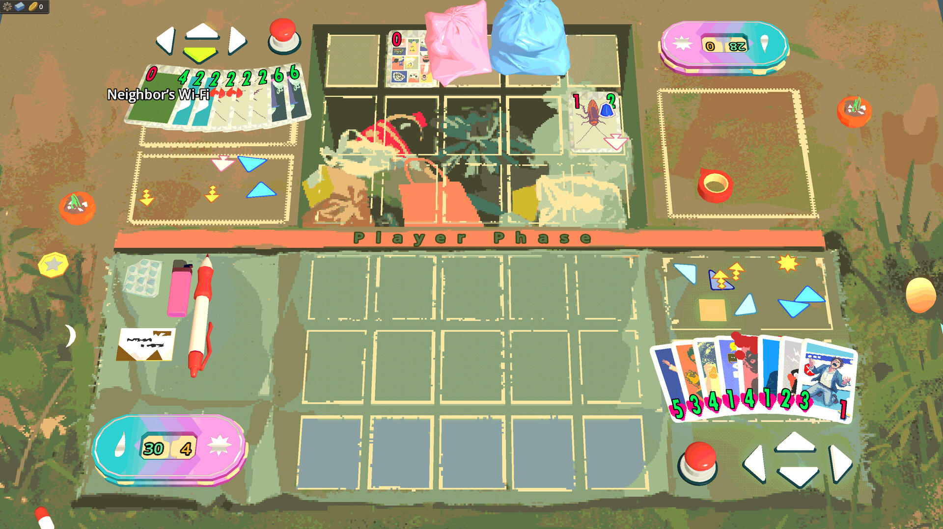 Taking Today Off is a light-hearted roguelike deck-builder about managing modern life states. Draw cards, place them on the board, add stickers and tools, and build playful combos. Easy to learn, with fresh choices and strategies every run.
