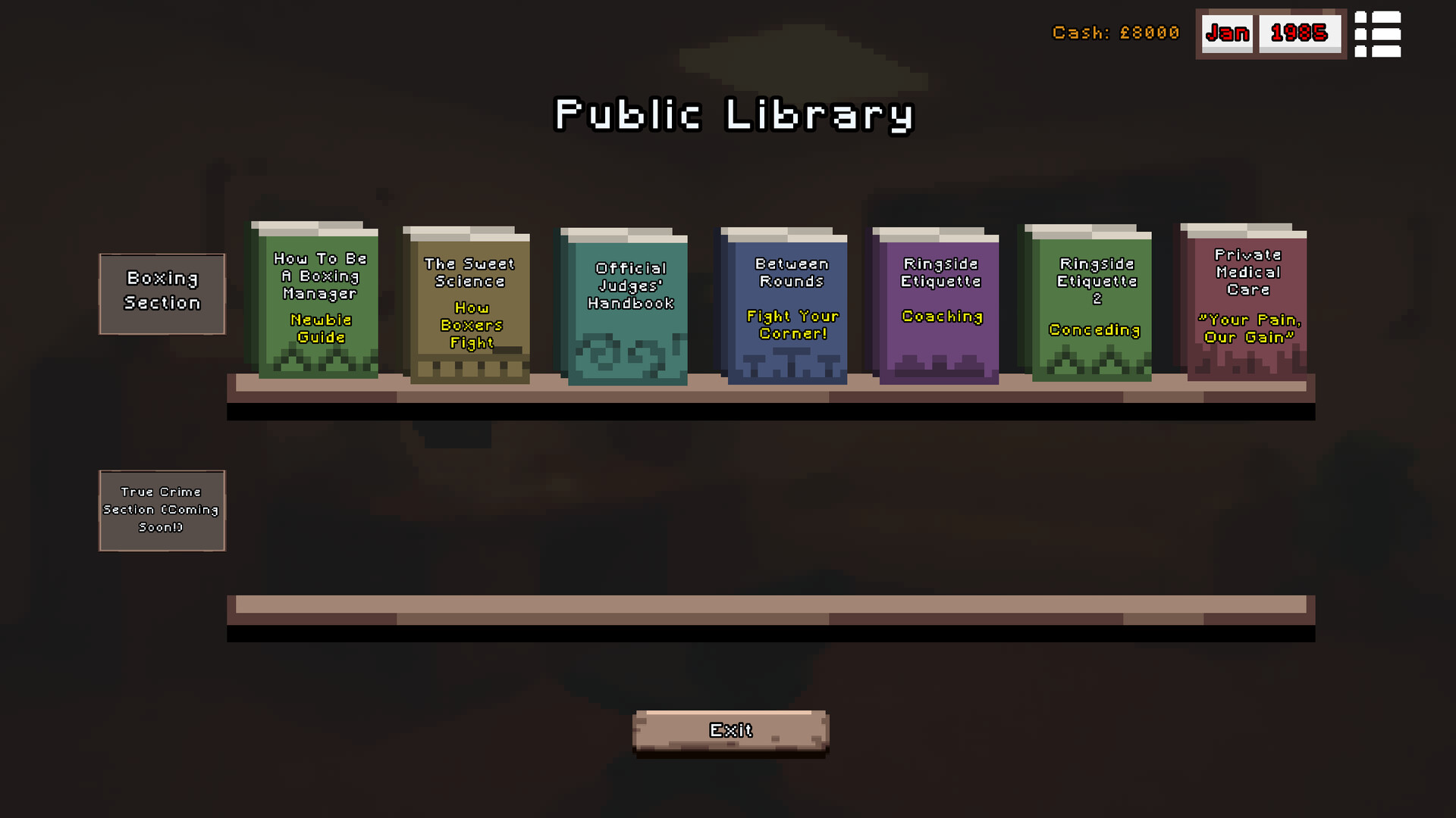 The Comeback King is a light-hearted retro boxing management game set in the UK in the 1980s. Take on a washed-up boxer and manage his career. Decide who he'll fight, train him up and send him out into the ring! Can you guide your boxer to a title contest against the division Champion?