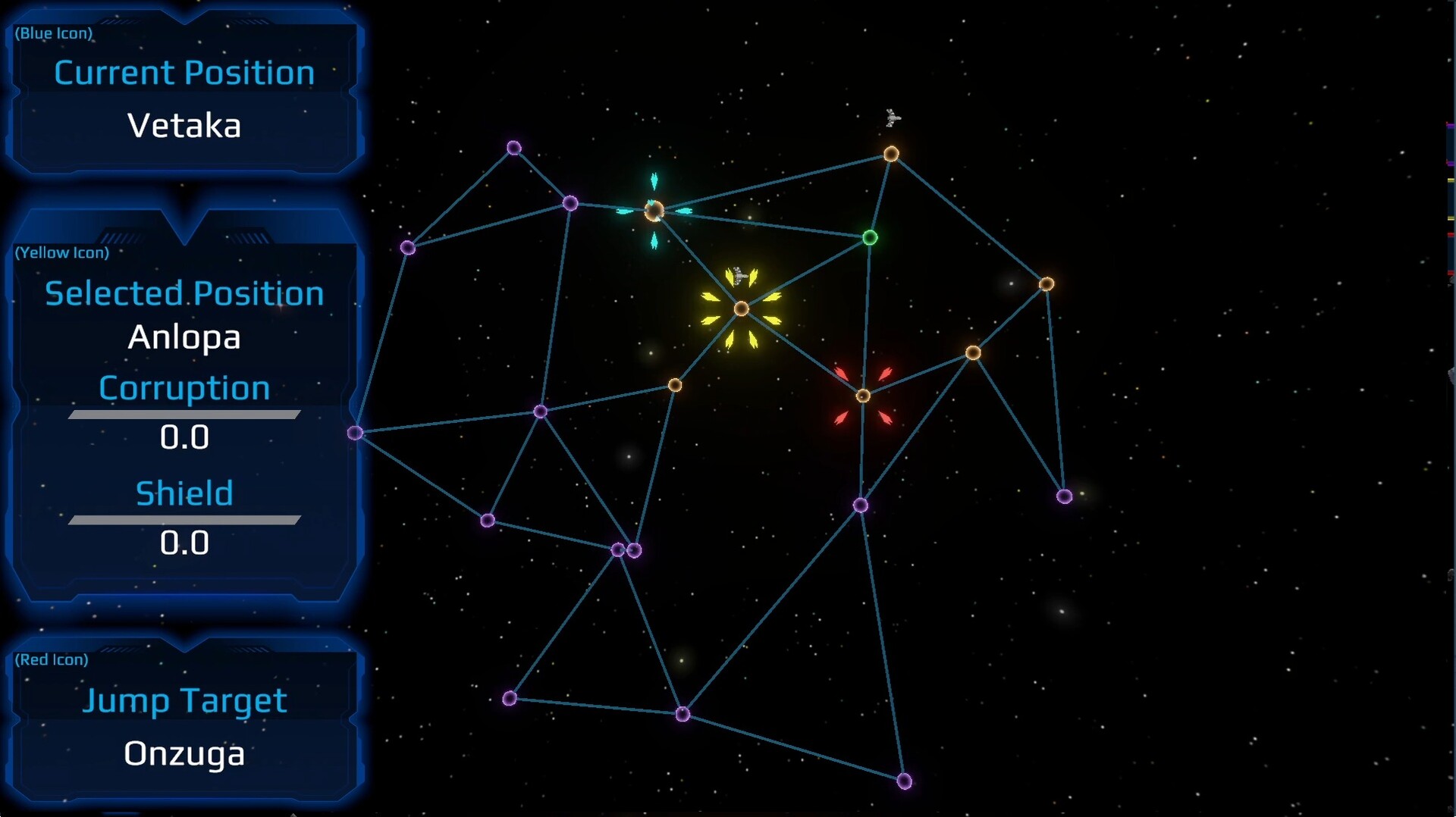 Pilot your ship across a procedurally generated star map as corruption spreads inward. Each sector holds a stabiliser; protect it from raiders and pump energy into its shields. Jump between nodes, prioritise threats, and manage energy. Hold the line until time runs out, or be consumed by corruption.
