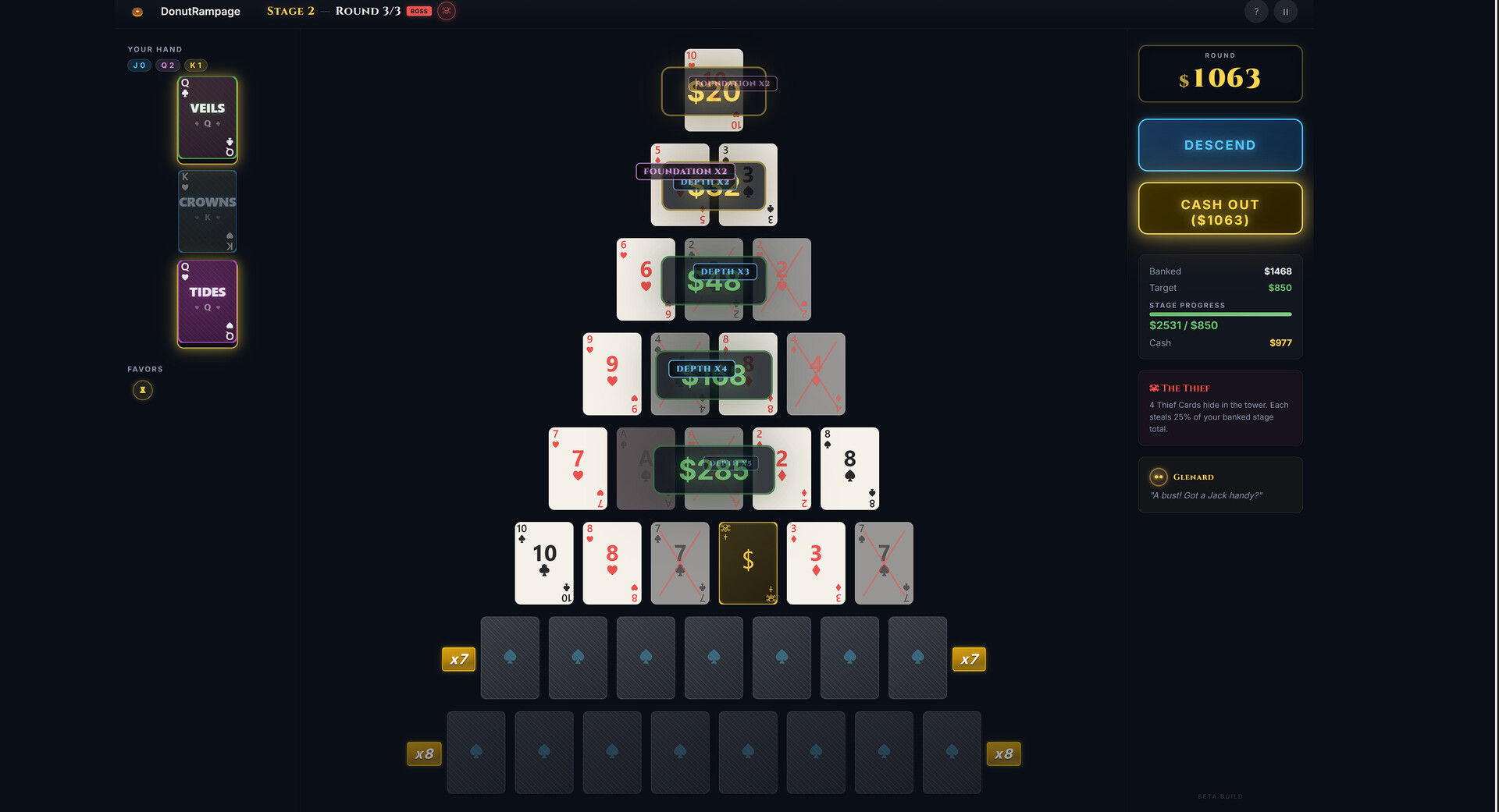 A card-based roguelike where every flip could be your fortune — or your doom. Descend a pyramid of cards, dodge deadly matches, play face cards at the perfect moment, and risk your score against 10 brutal boss towers. No two runs are the same.