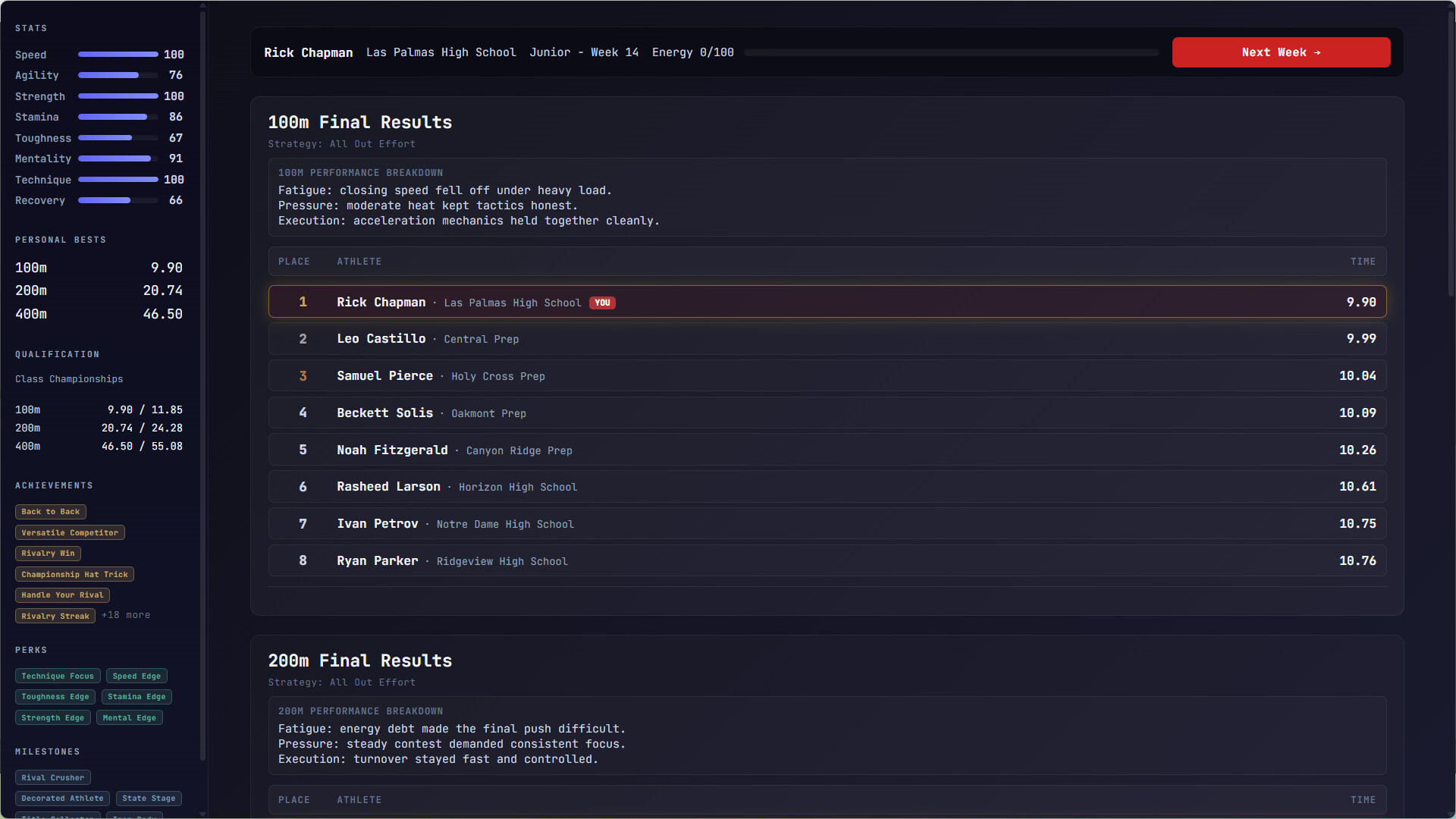 Four years of high school track & field. One shot at a college scholarship. Choose your specialty, build your athlete, and beat the rival who's been faster than you since day one.
