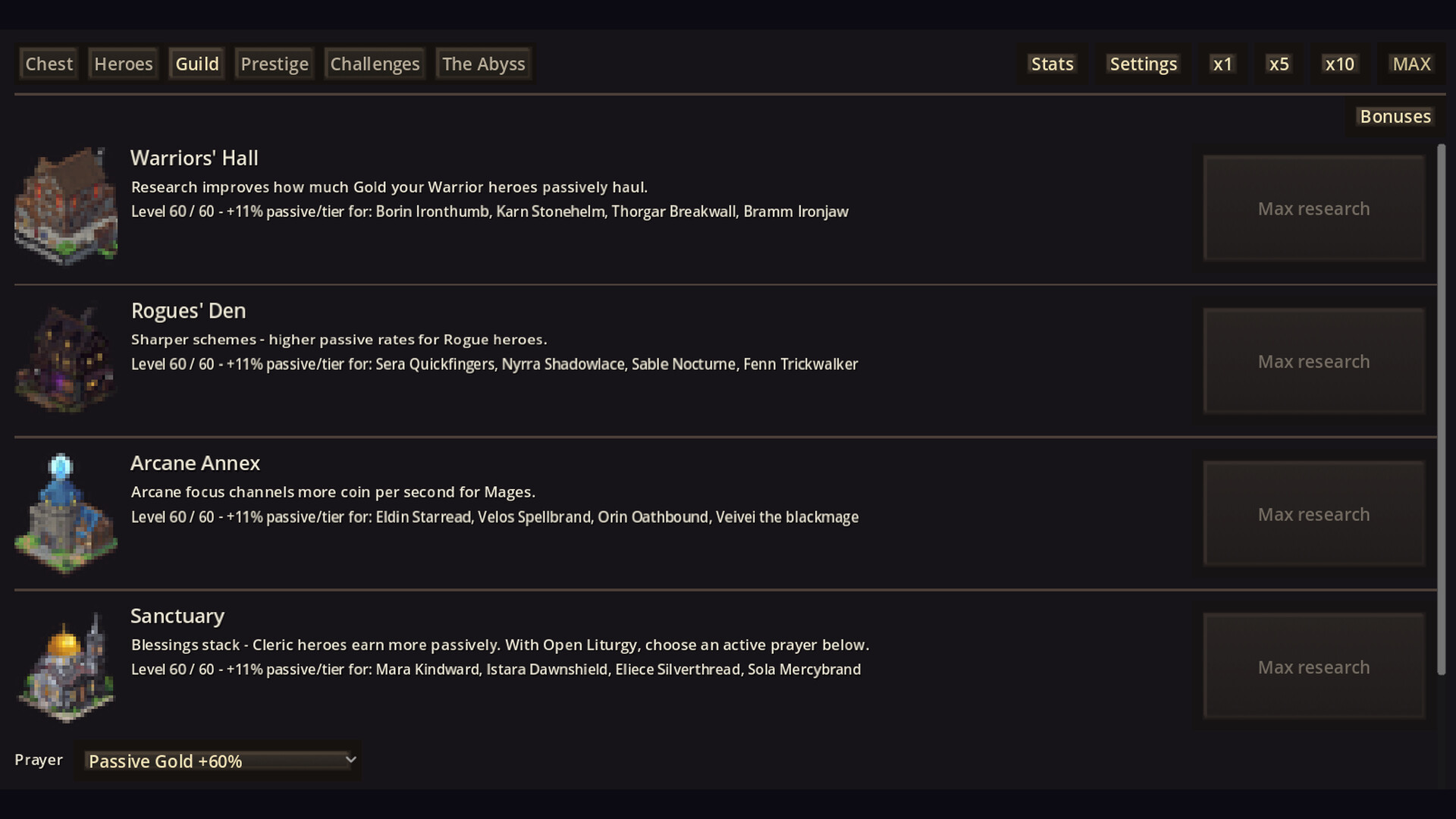 Tap the chest, buy upgrades, and grow a hoard that spirals into absurdity. Hire heroes, fund guild research, and spend Essence on a skill tree that persists between prestiges. When you need a change of pace, race the clock in speed challenges or descend into The Abyss