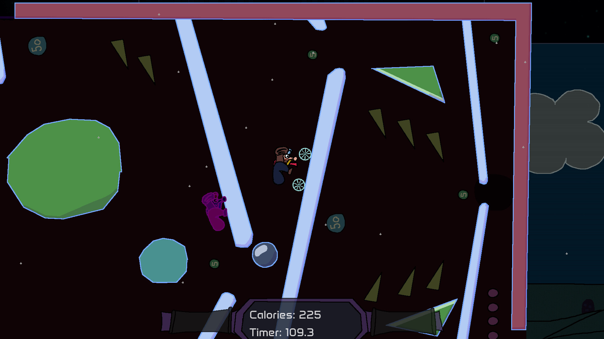A cyclical jaunt. Pilot a bicycle vertically to the peak of a frozen mountain tower! Platform with the power of momentum and rage to reach the summit!