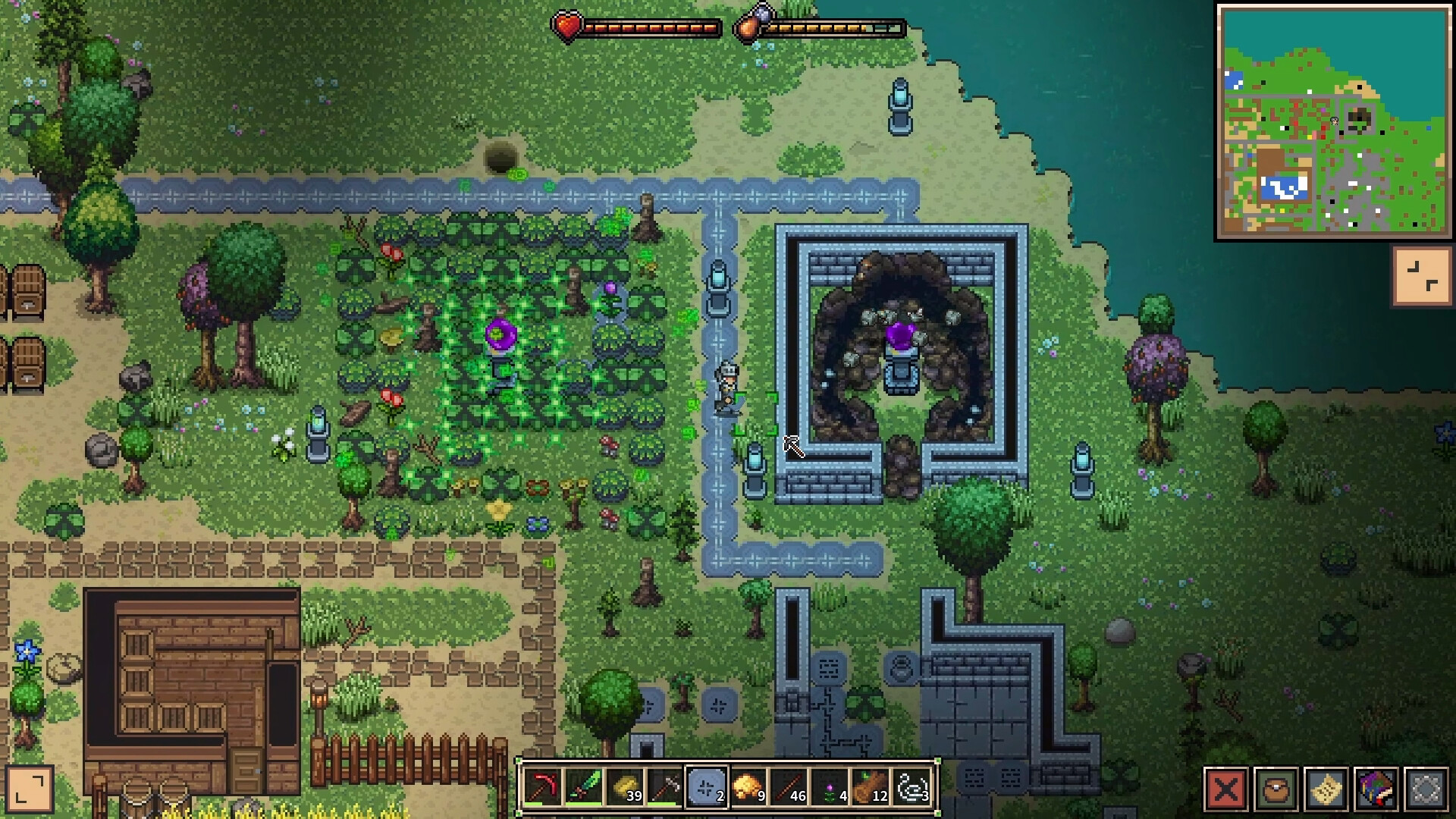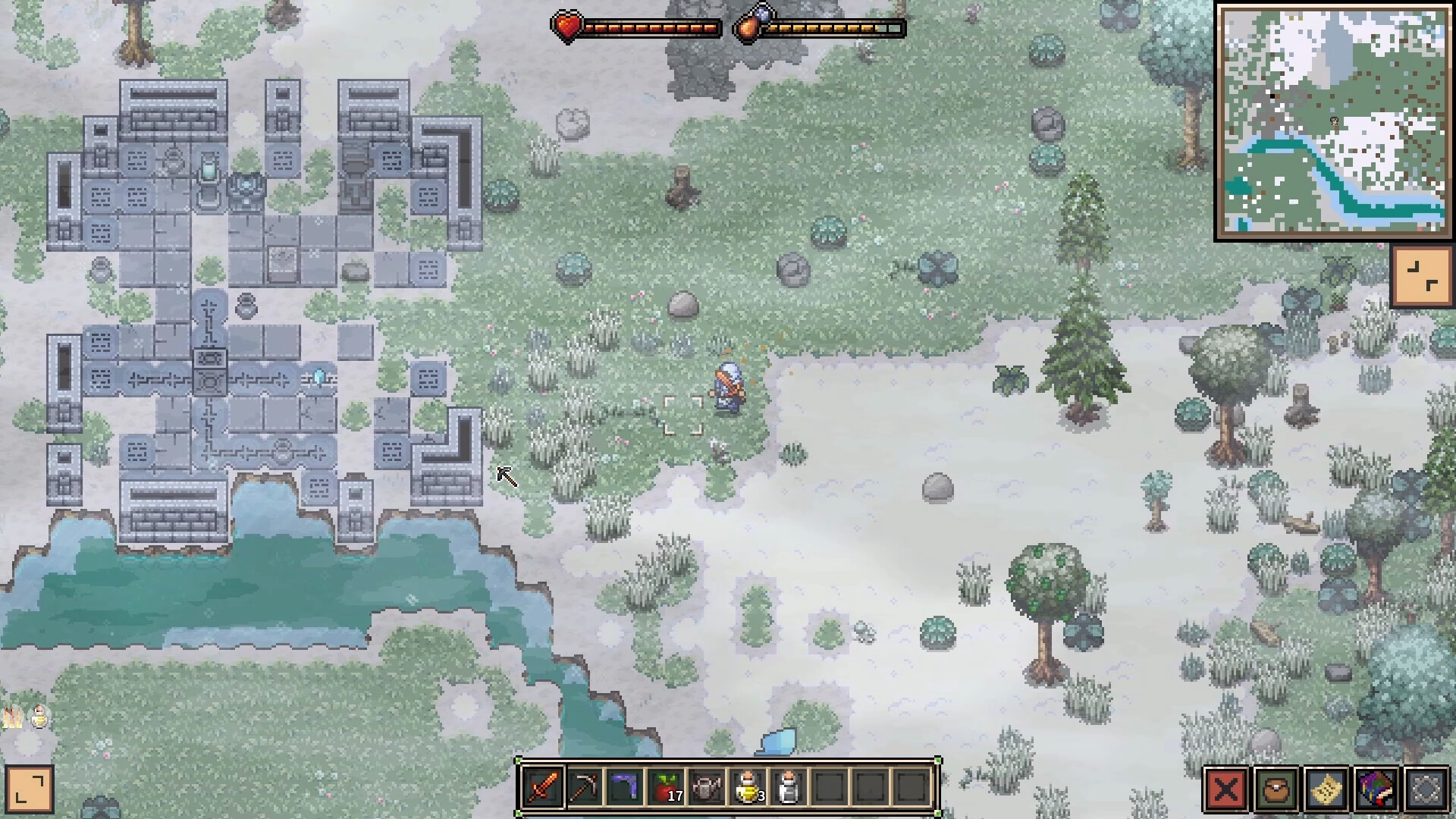 A 2D top-down survival game set in a rich and challenging world. Explore mines, gather resources, craft equipment, and build magical structures. Defeat powerful enemies, discover ancient ruins, automate resource production, unlock abilities with altars, and travel through mysterious dimensions.
