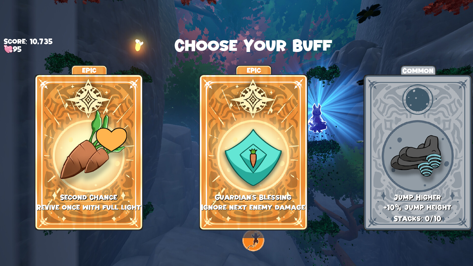 After a hard day of adventuring, Usagi falls asleep and slips into a world that feels familiar, but wrong in some sense. Guide Usagi through this strange dreamscape: eat carrots to sustain the light, rank up to gain dreamy powers, dodge enemies, and snack on vegetables… and candies?