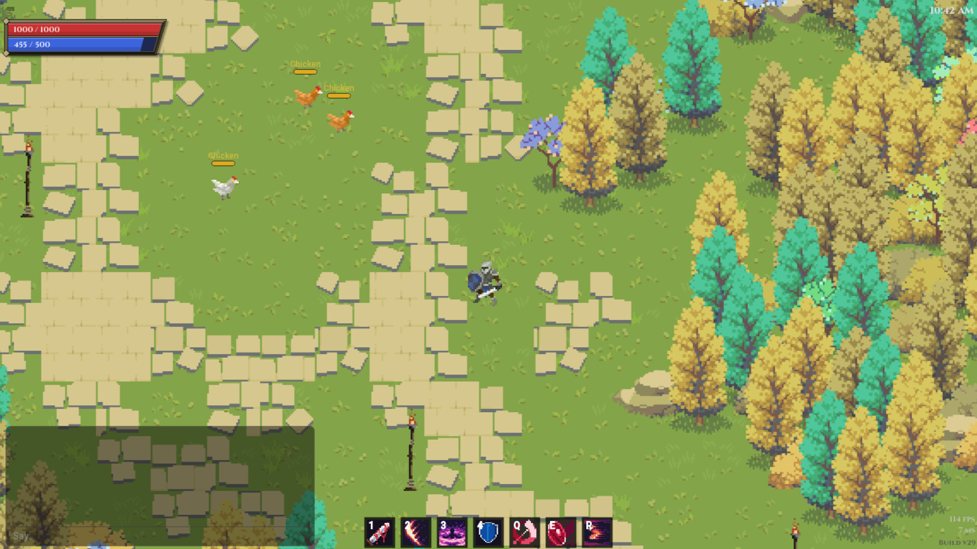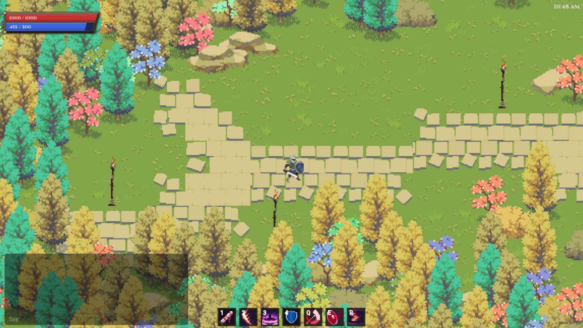 Vanguard is a pixel-art multiplayer MMORPG with top-down action combat. Think Realm of the Mad God meets WoW meets Path of Exile. Four classes with their own ability kits - Knight, Mage, Priest, Ranger. Build your character, group up, and run dungeons.