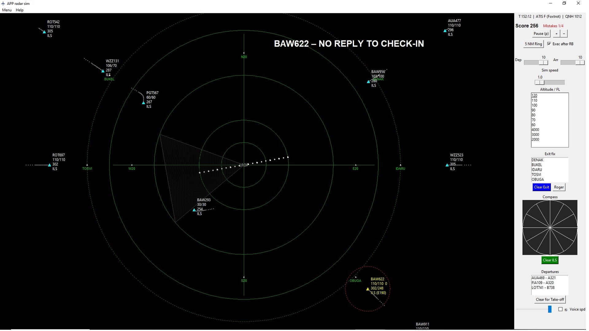 Vector Approach is a minimalist ATC Radar trainer. Use mouse and keyboard commands to identify traffic (“Roger”), vector, sequence arrivals, manage departures with runway timing. Check 5-NM separation, capture the ILS or issue go-arounds. Fast to start, hard to master.