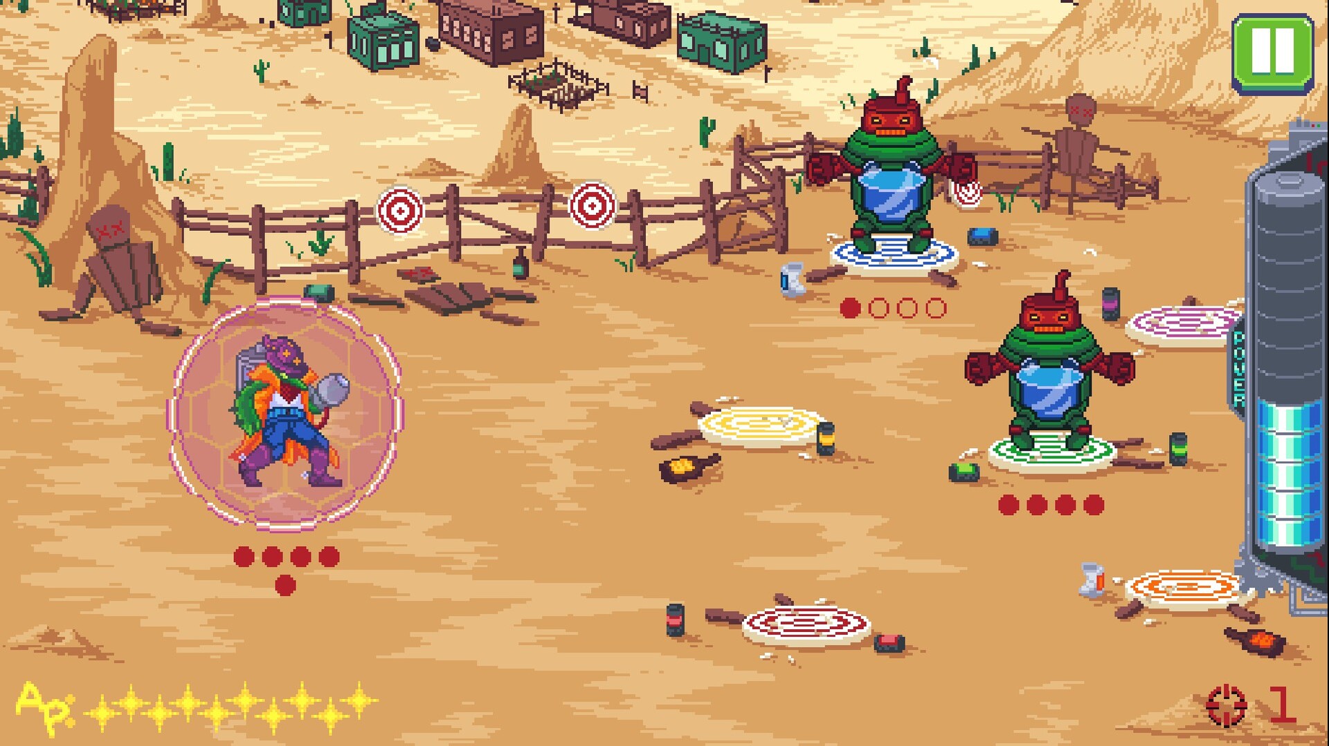 Waterjacked! is a roguelike with turn-based combat where you are a cactus with a gun. Chosen to wield the GRID, gather an assortment of modules and uncover clever combos to outwit the invading robots keen on stealing all the water in The Valley. Will you be the hero to save your people?