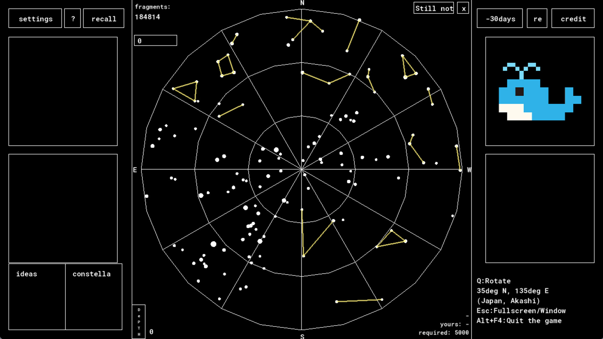 「Your Own Constella」 is a relaxing game where you create your very own constellations in a real night sky. Using a star map based on real-world time and location, you can freely edit and place your favorite images—or choose from roughly 270 illustrations—as constellations.