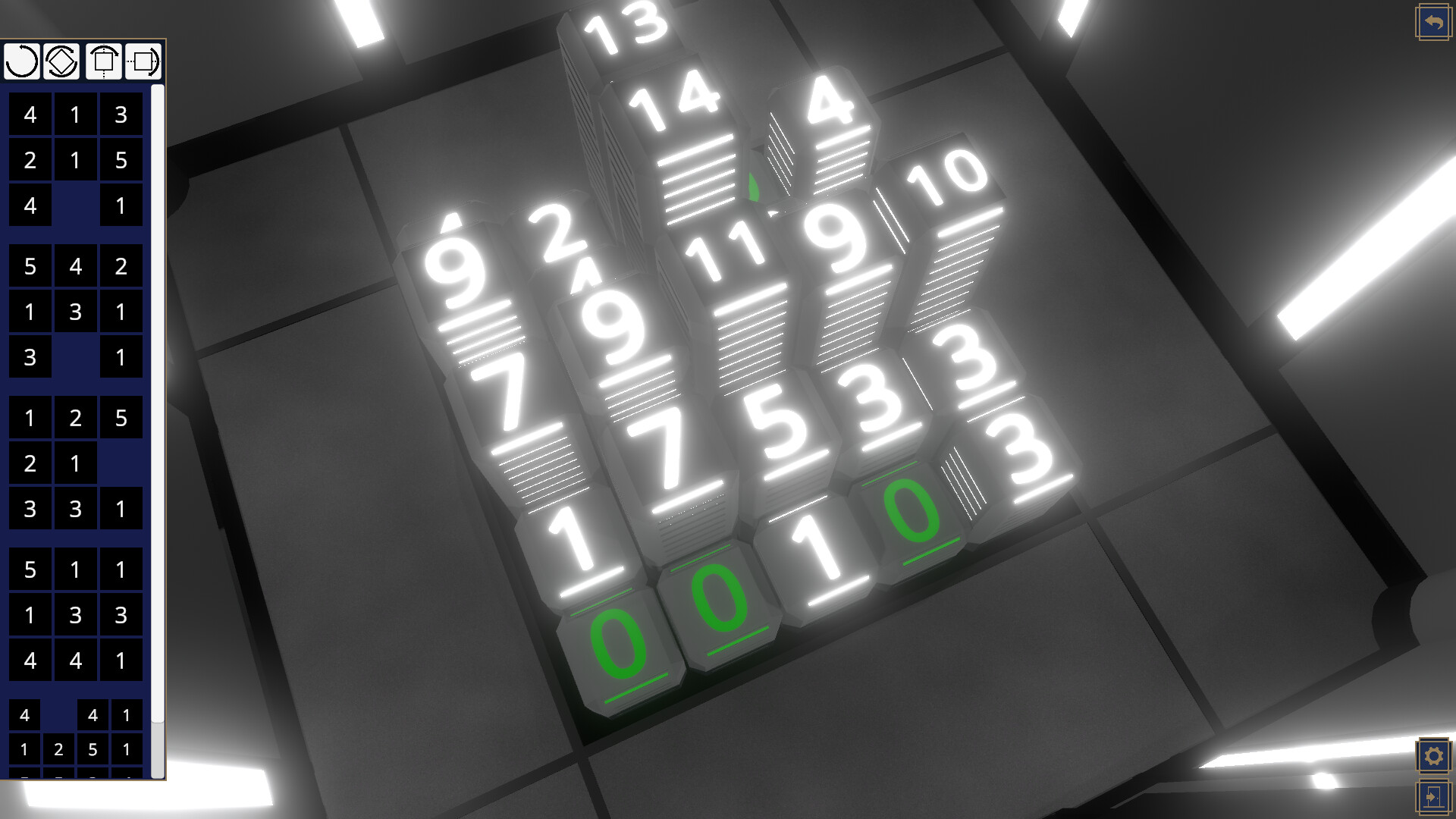 Complete puzzles by zeroing out the board! This is achieved by placing the pieces onto the board. Once the piece is placed, the numbers of the affiliated squares on the board will decrease based on the number of the piece. Pieces may need to be rotated or flipped.